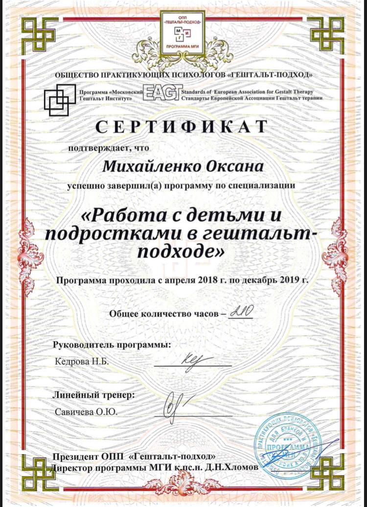 Дипломы и сертификаты психолога